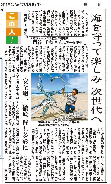 お知らせ 「海を守って次世代へ」水辺フィットネス協会代表理事のインタビュー記事が毎日新聞に掲載されました。 2019.08.20 2025.12.04 お知らせ 「海を守って次世代へ」水辺フィットネス協会代表理事のインタビュー記事が毎日新聞に掲載されました。 株式会社テレQ九州放送 番組「ふくおかサテライト」にSUPNESSが取り上げられました。 前の記事 水辺フィットネス協会の概要をまとめたPDFをアップしました。 次の記事 関連記事 イベント協賛ありがとうございます! 2024.07.10 【海のマイスタープログラム】開催レポート動画を公開! 2025.09.10 テレビ放送のお知らせ📣 2025.02.22 【Instagram】毎日更新中 2023.11.02 2024シーガルカップ開催しました 2024.10.15 ミズベフィットが仕掛ける、福間海岸でワンハンドビーチクリーン 日本財団 海と日本PROJECT in ふくおか 2021 2021.10.22 ライフセーバー・シーバード活動の紹介 2024.06.10 【7/28子どもイベント】海に入るプログラムに参加する方へ 2024.07.14