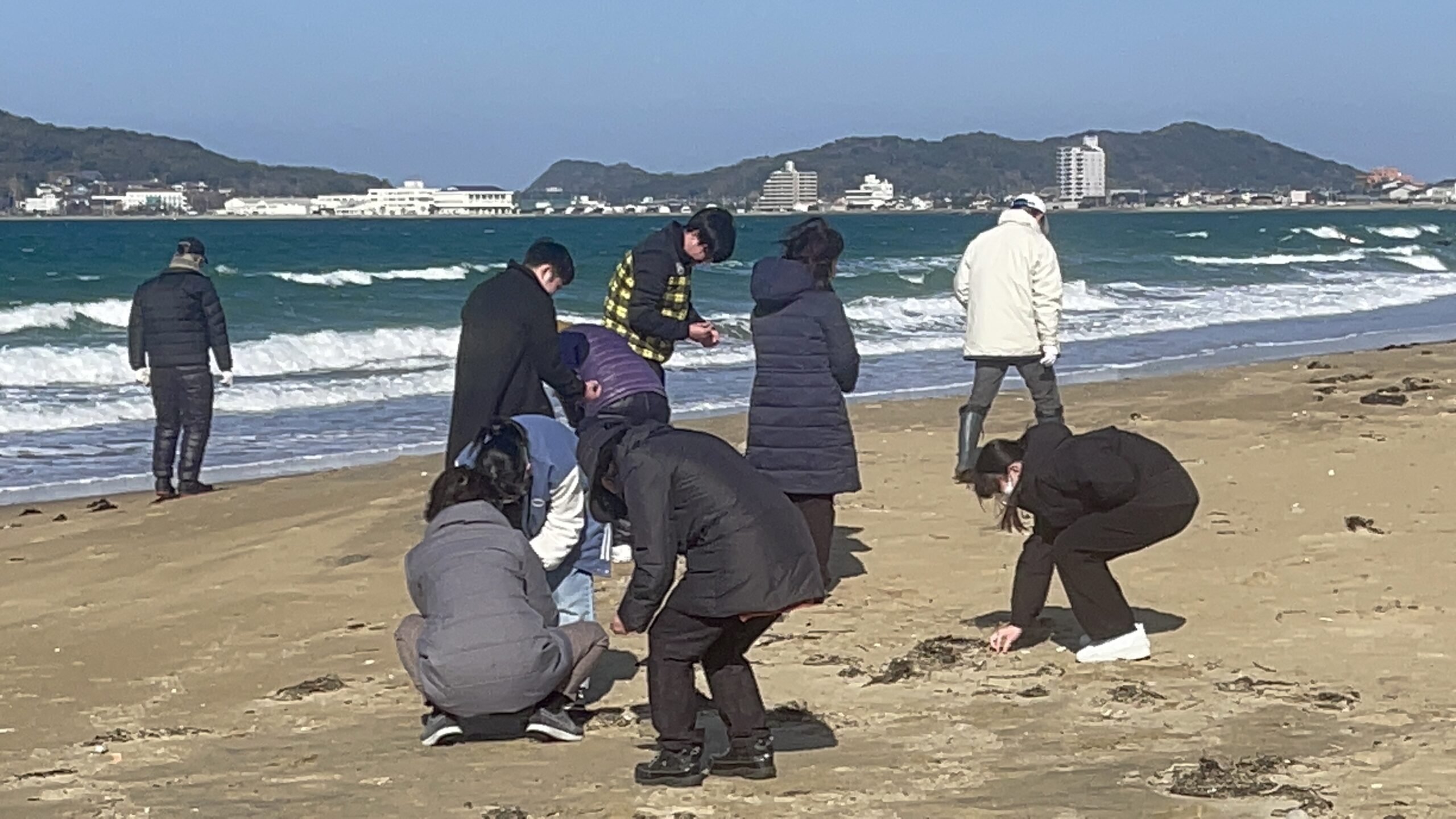 実際にビーチで《健康ワンハンドビーチクリーン》を体験してもらいました。
